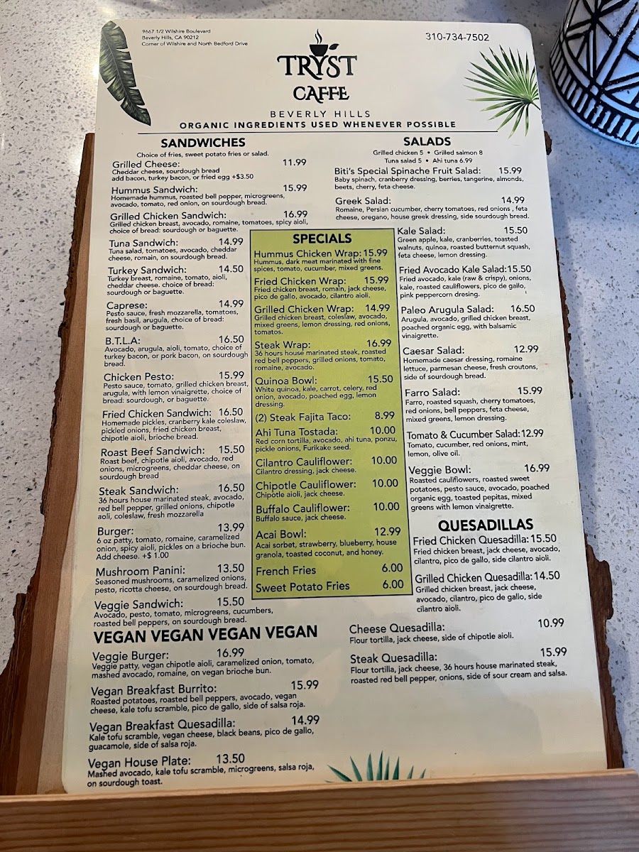 Kale green apples, cranberries, toasted walnuts, quinoa, and feta with lemon vinaigrette. $11.99 Option add chicken (4) or salmon (6)
